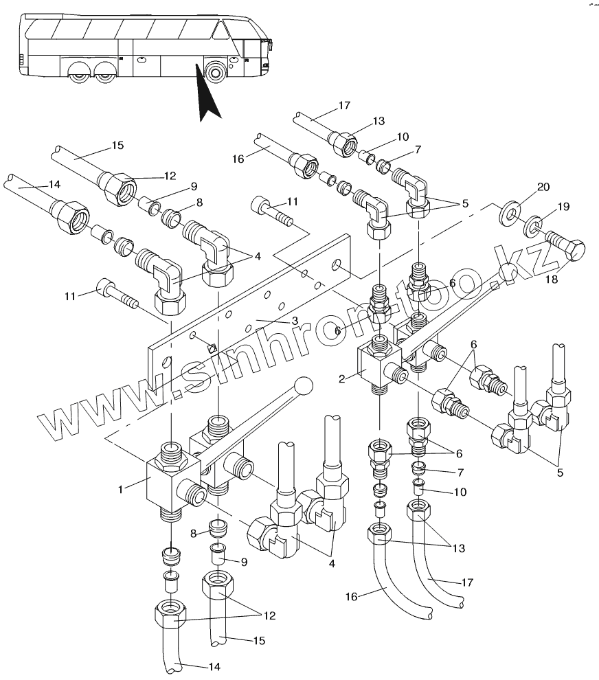 Каталог запасных частей к технике: Neoplan N 516 SHD (MB, DC) E2. CHANGE OVER COCK