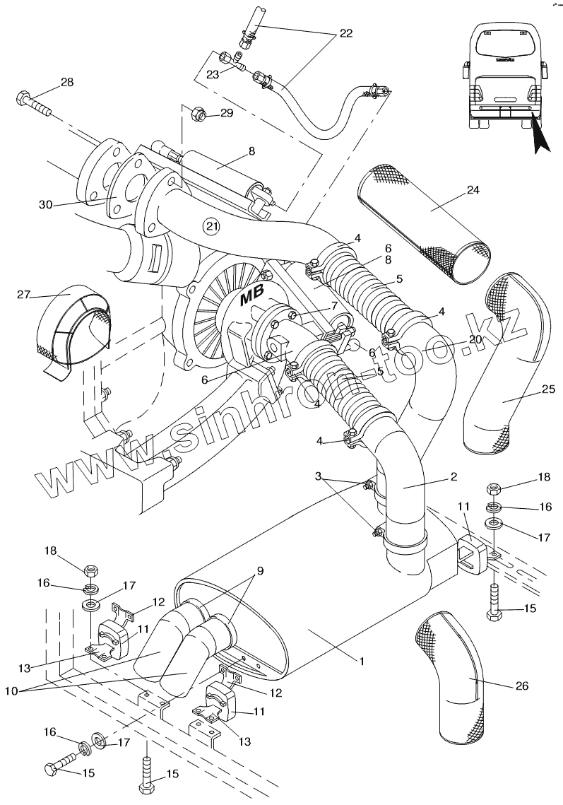 Каталог запасных частей к технике: Neoplan N 516 SHD (MB, DC) E2. EXHAUST SYSTEM
