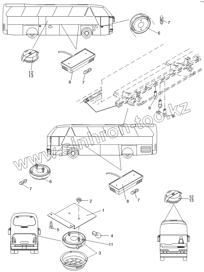 Каталог запасных частей к технике: Neoplan N 516 SHD (MB, DC) E2. INSIDE LIGHTING