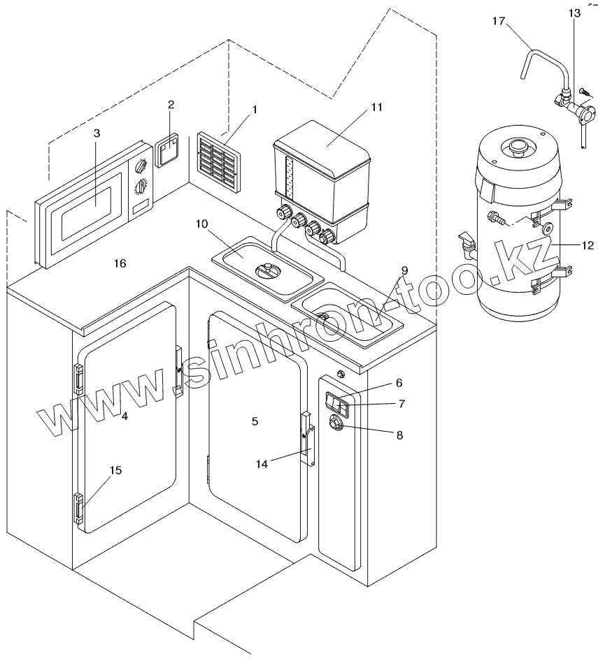 Каталог запасных частей к технике: Neoplan N 516 SHD (MB, DC) E2. KITCHEN WITH FRIDGE