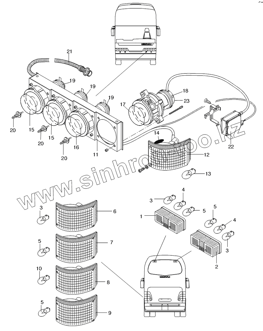 Каталог запасных частей к технике: Neoplan N 516 SHD (MB, DC) E2. OUTSIDE LIGHTING