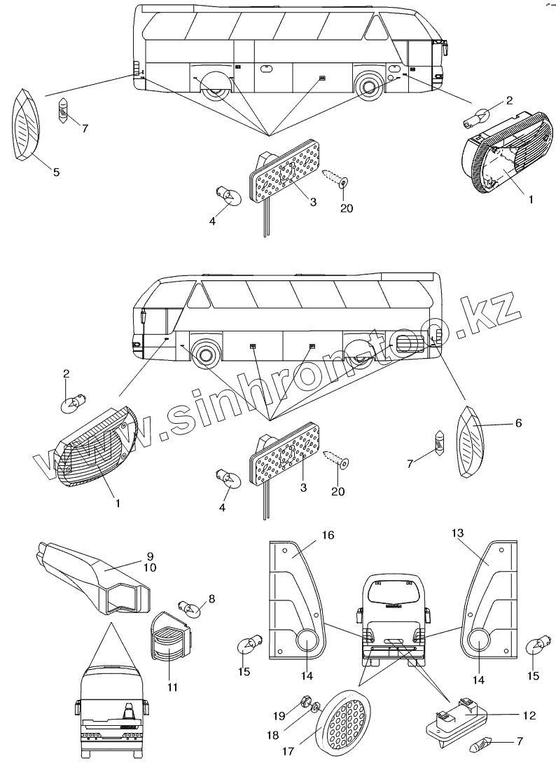 Каталог запасных частей к технике: Neoplan N 516 SHD (MB, DC) E2. OUTSIDE LIGHTING