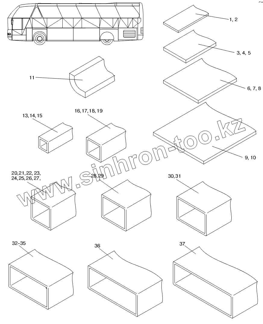 Каталог запасных частей к технике: Neoplan N 516 SHD (MB, DC) E2. PROFILE PARTS GENERAL