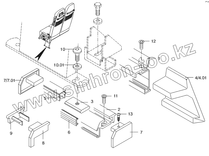 Каталог запасных частей к технике: Neoplan N 516 SHD (MB, DC) E2. SEAT RAIL