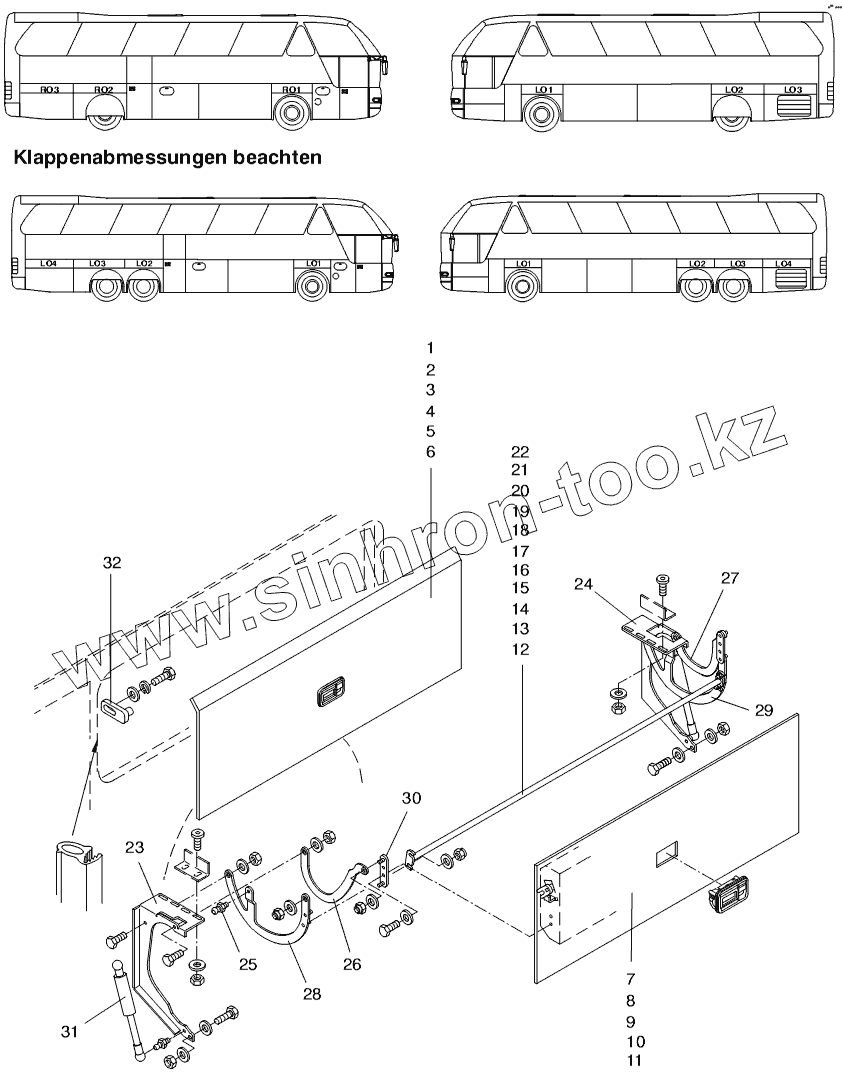 Каталог запасных частей к технике: Neoplan N 516 SHD (MB, DC) E2. SERVICE FLAP