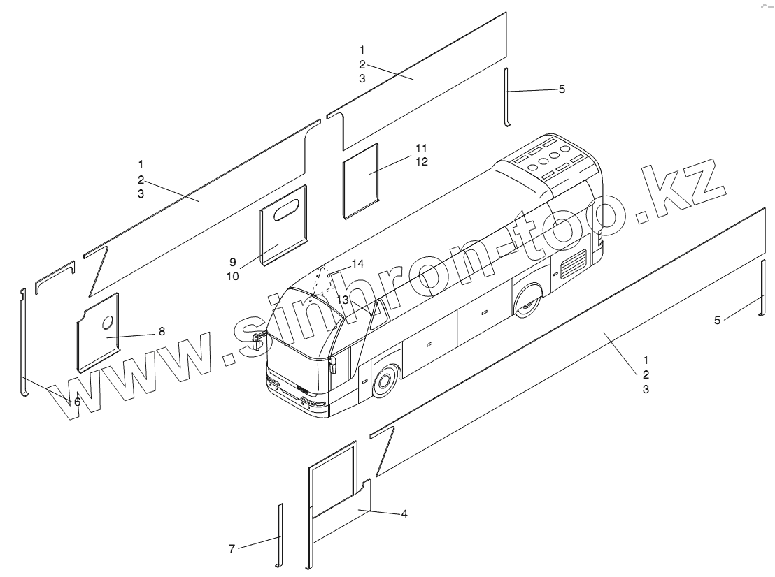 Каталог запасных частей к технике: Neoplan N 516 SHD (MB, DC) E2. SHEETING OUTSIDE