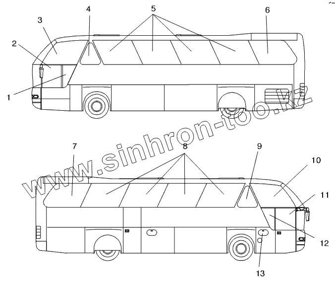 Каталог запасных частей к технике: Neoplan N 516 SHD (MB, DC) E2. SIDE WINDOWS