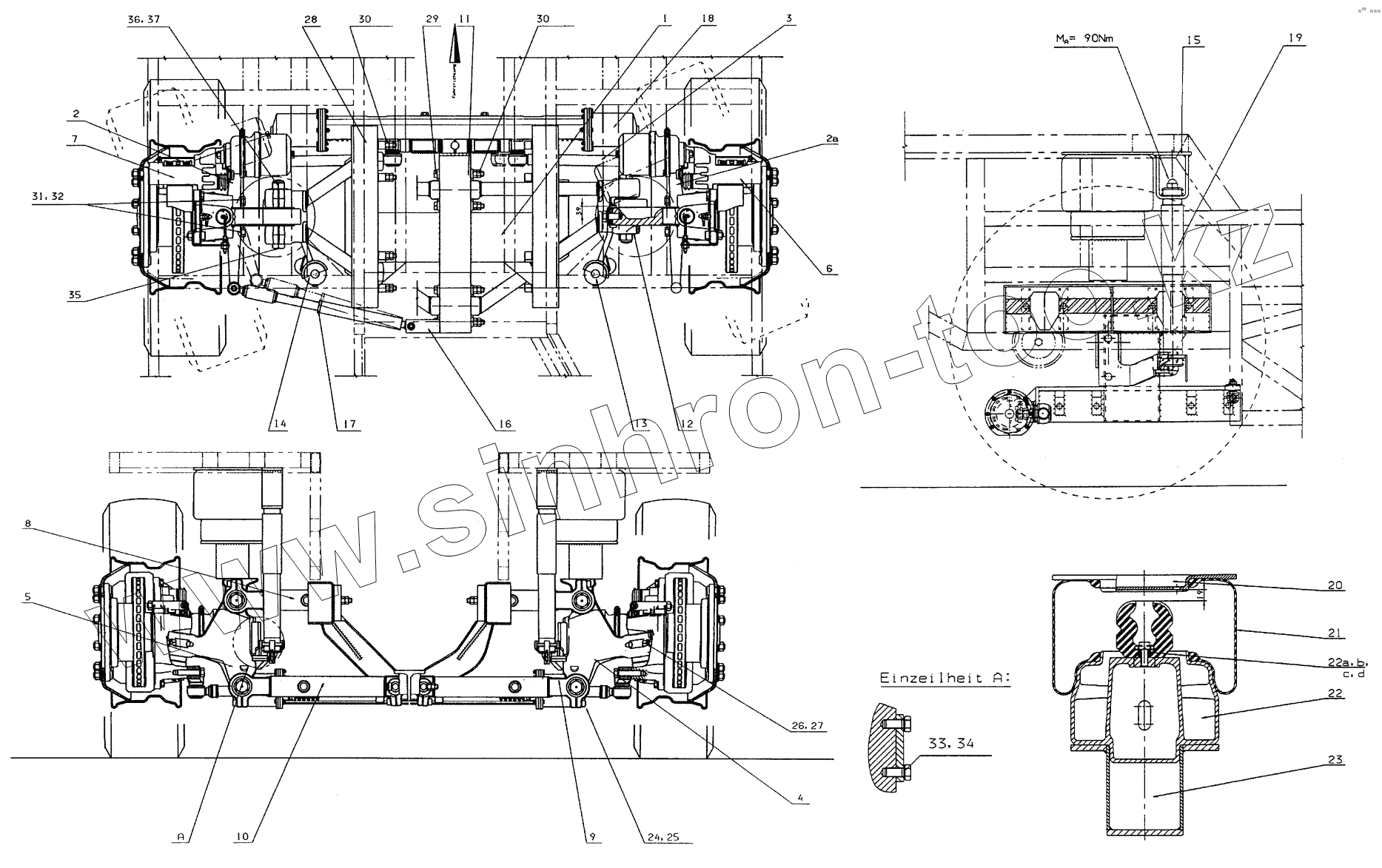 Каталог запасных частей к технике: Neoplan N 516 SHD (MB, DC) E2. TRAILING AXLE