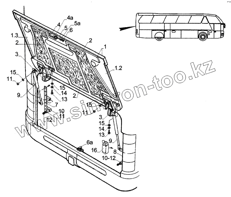 Каталог запасных частей к технике: Neoplan N 516 SHD (MB) E2. ENGINE ROOM FLAP