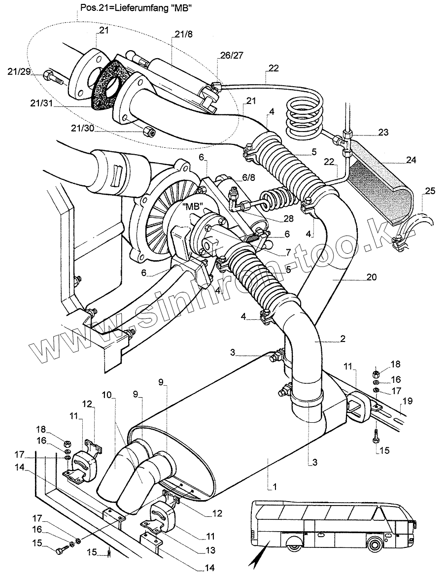 Каталог запасных частей к технике: Neoplan N 516 SHD (MB) E2. EXHAUST SYSTEM