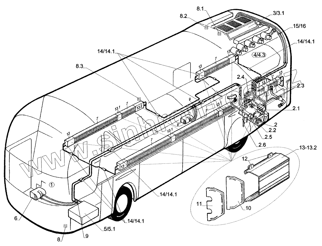 Каталог запасных частей к технике: Neoplan N 516 SHD (MB) E2. HEATING CIRCULATION