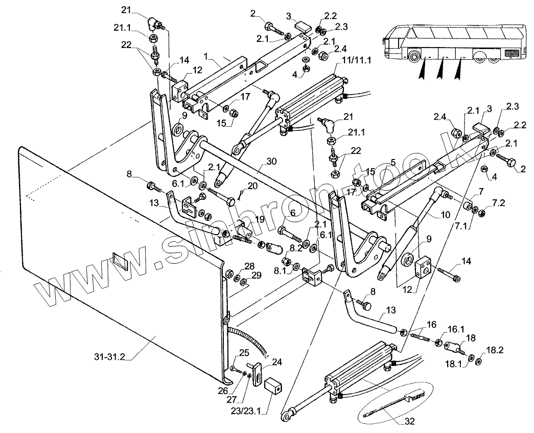 Каталог запасных частей к технике: Neoplan N 516 SHD (MB) E2. LUGGAGE-COMPARTMENT LID CPL. LEFT