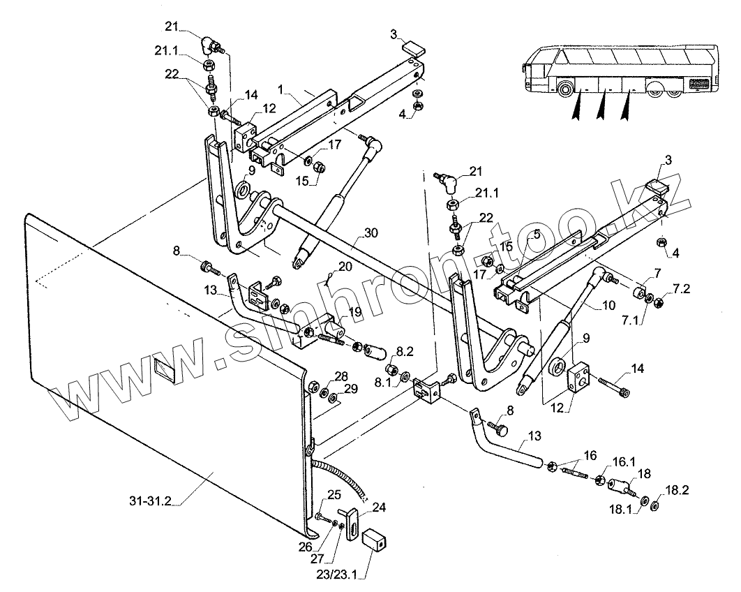 Каталог запасных частей к технике: Neoplan N 516 SHD (MB) E2. LUGGAGE-COMPARTMENT LID CPL. LEFT