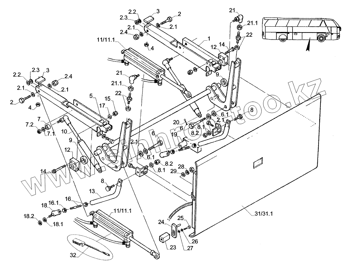 Каталог запасных частей к технике: Neoplan N 516 SHD (MB) E2. LUGGAGE-COMPARTMENT LID CPL RIGHT