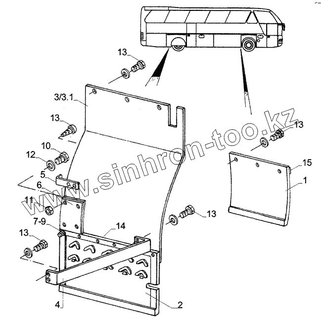 Каталог запасных частей к технике: Neoplan N 516 SHD (MB) E2. MUD FLAP