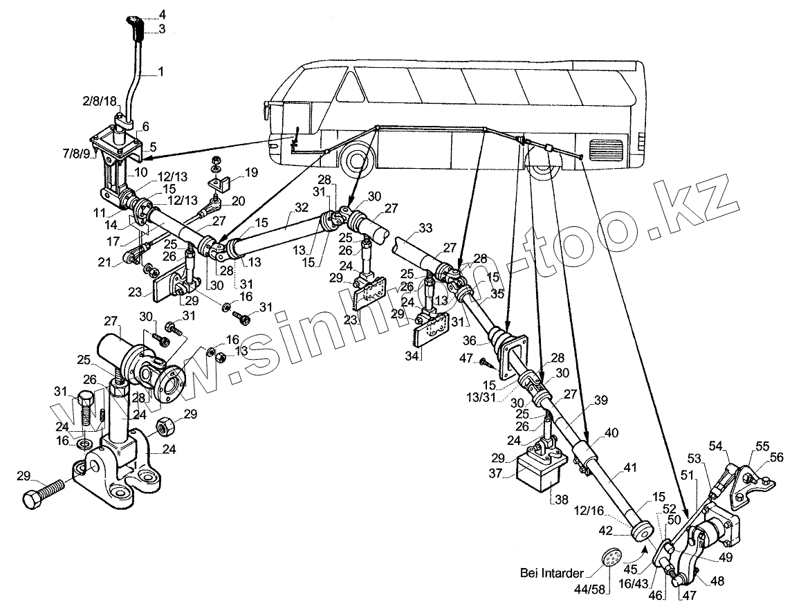 Каталог запасных частей к технике: Neoplan N 516 SHD (MB) E2. SELECTOR SHAFT AND PARTS