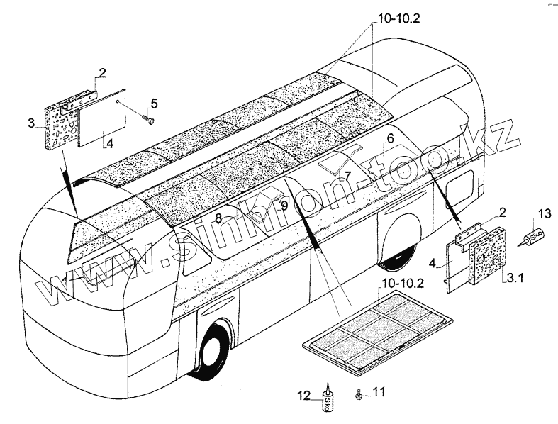 Каталог запасных частей к технике: Neoplan N 516 SHD (MB) E2. SHEETMETAL INSIDE
