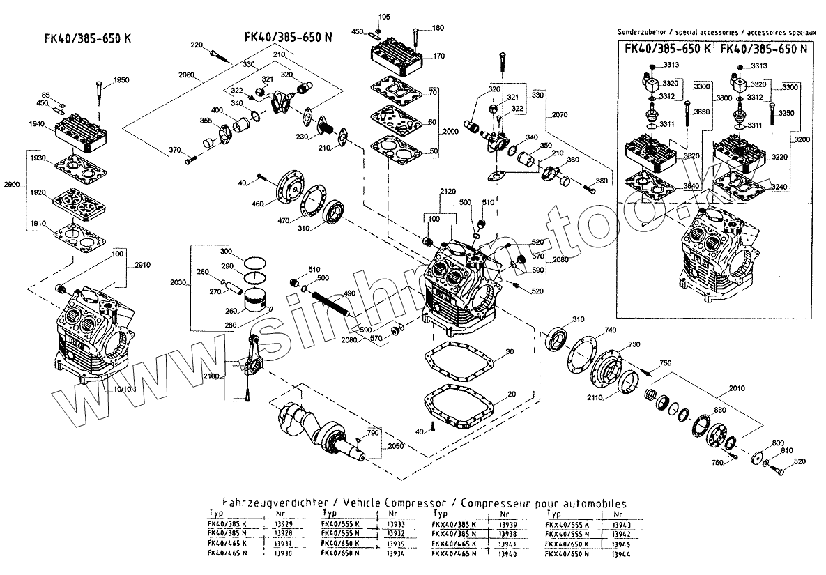 Каталог запасных частей к технике: Neoplan N 516 SHD (MB) E2. SPARE PARTS COMPRESSOR