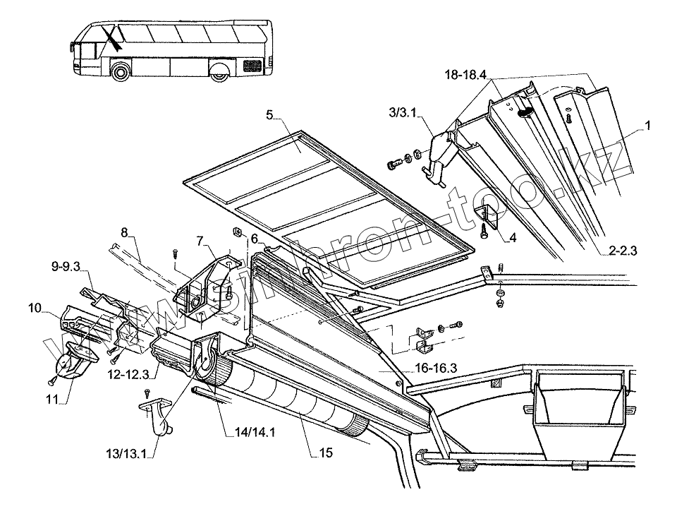 Каталог запасных частей к технике: Neoplan N 516 SHD (MB) E2. STRIP INSIDE-AIR PASSAGE