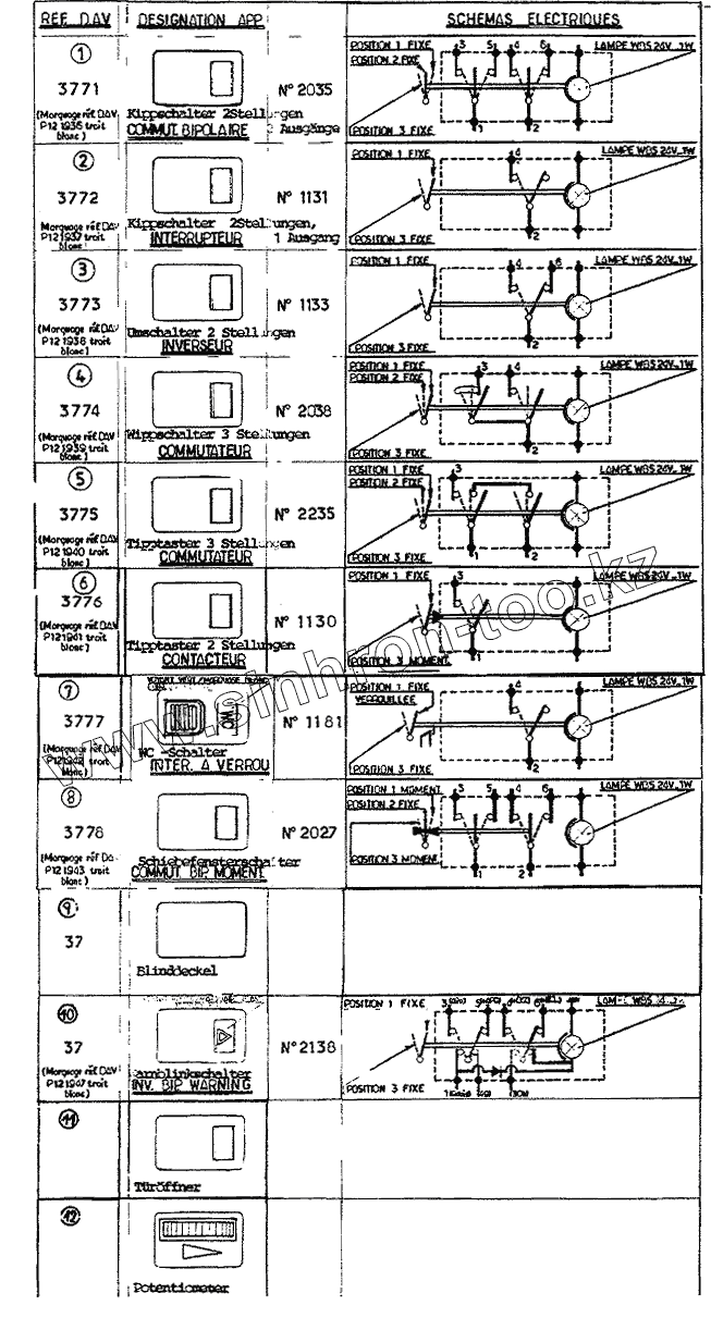 Каталог запасных частей к технике: Neoplan N 516 SHD (MB) E2. SWITCHES FOR DASH BOARD