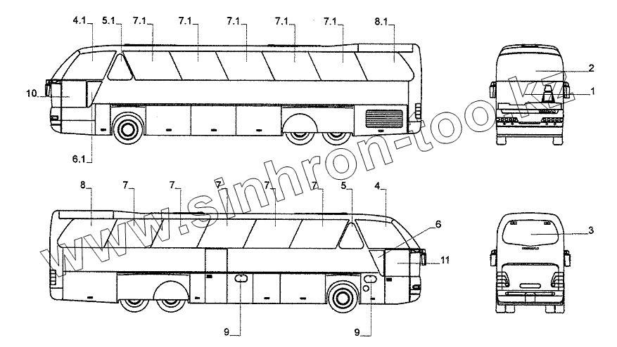 Каталог запасных частей к технике: Neoplan N 516 SHD (MB) E2. WINDOWS