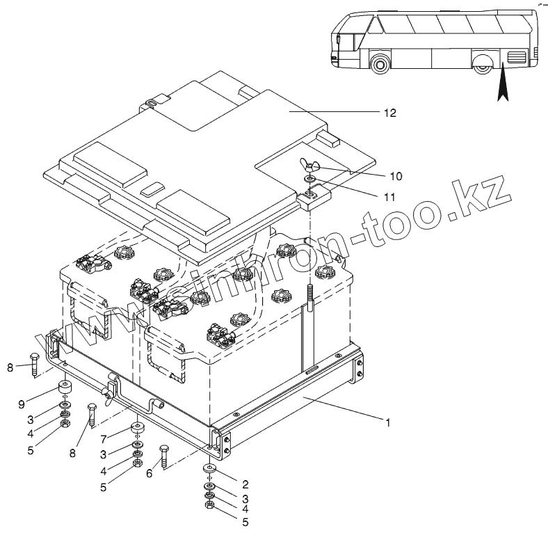Каталог запасных частей к технике: Neoplan N 516 SHD (MB) E3. BATTERY MOUNTING