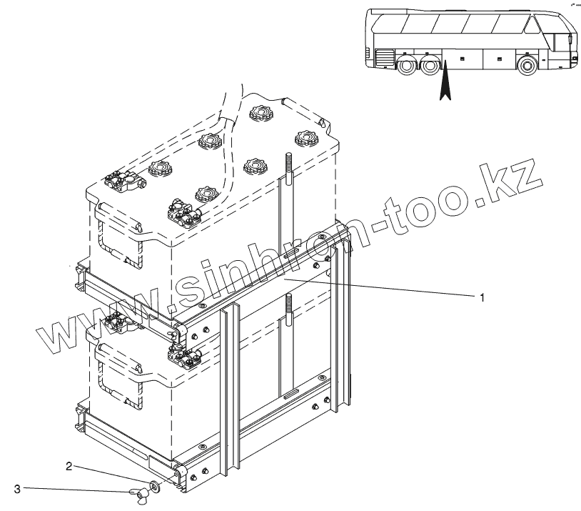 Каталог запасных частей к технике: Neoplan N 516 SHD (MB) E3. BATTERY MOUNTING