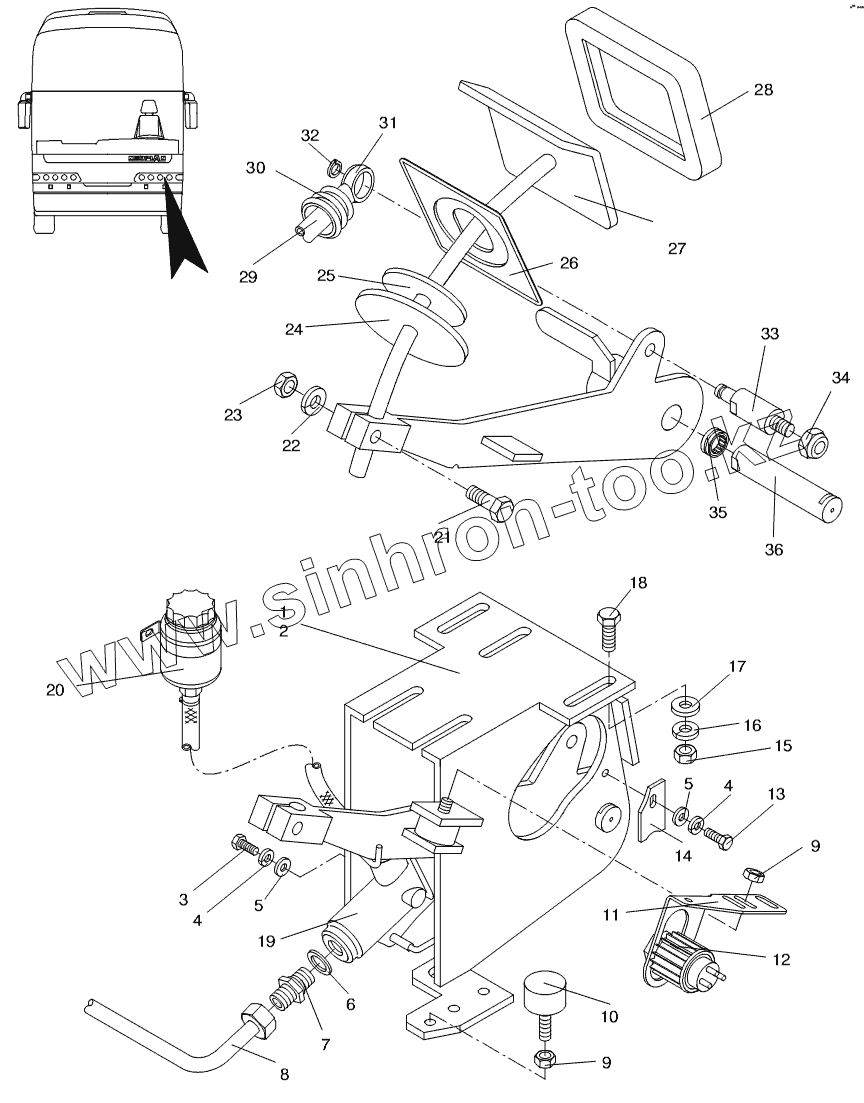 Каталог запасных частей к технике: Neoplan N 516 SHD (MB) E3. COUPLING WITH PEDAL WITHOUT AVS
