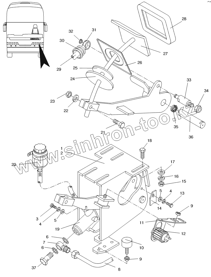 Каталог запасных частей к технике: Neoplan N 516 SHD (MB) E3. COUPLING WITH PEDAL WITHOUT AVS