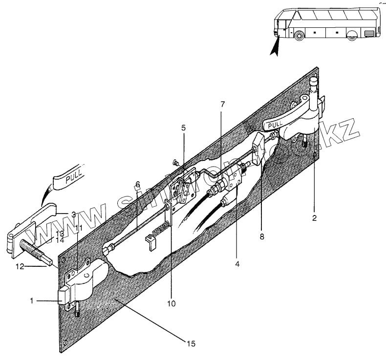 Каталог запасных частей к технике: Neoplan N 516 SHD (MB) E3. EMERGENCY DOOR LOCKING SYSTEM