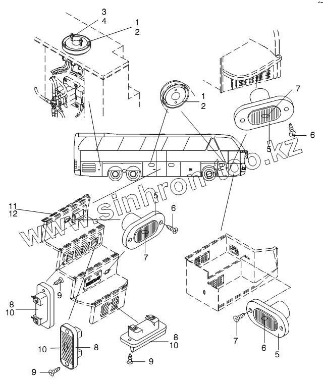 Каталог запасных частей к технике: Neoplan N 516 SHD (MB) E3. ENTRANCE ILLUMINATION