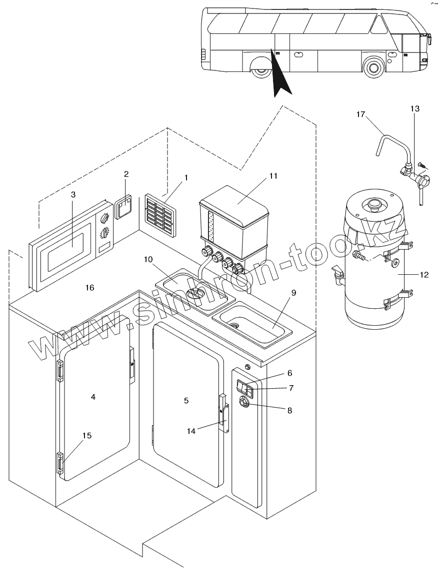 Каталог запасных частей к технике: Neoplan N 516 SHD (MB) E3. KITCHEN WITH FRIDGE