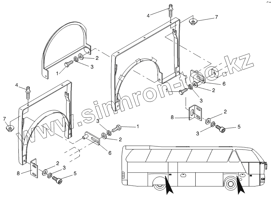 Каталог запасных частей к технике: Neoplan N 516 SHD (MB) E3. MOUNTING PARTS WHEEL HOUSE