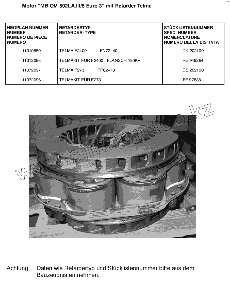 Каталог запасных частей к технике: Neoplan N 516 SHD (MB) E3. RETARDER TELMA
