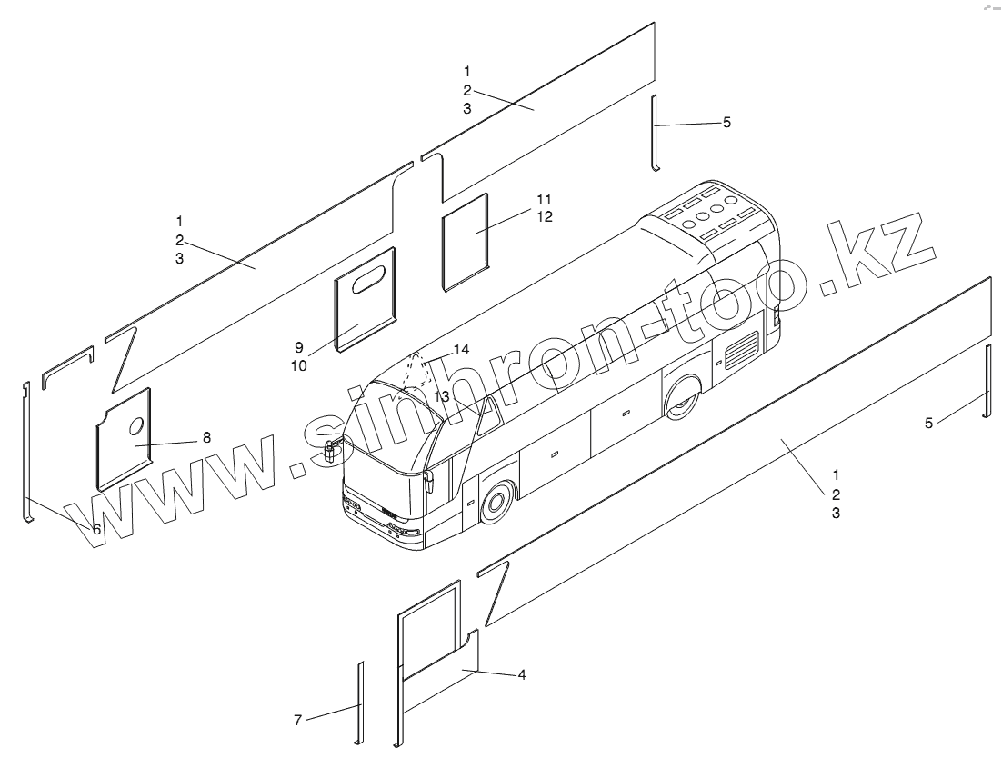 Каталог запасных частей к технике: Neoplan N 516 SHD (MB) E3. SHEETING OUTSIDE
