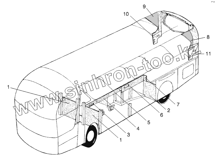 Каталог запасных частей к технике: Neoplan N 516 SHD (MB) E3. SHEETMETAL INSIDE