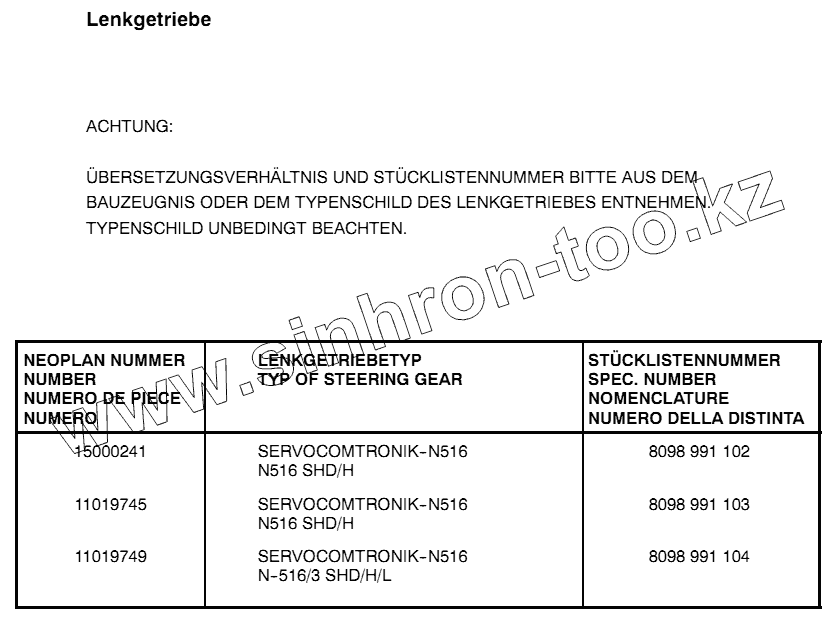 Каталог запасных частей к технике: Neoplan N 516 SHD (MB) E3. STEERING GEAR