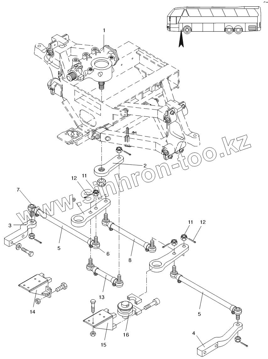 Каталог запасных частей к технике: Neoplan N 516 SHD (MB) E3. STEERING MECHANICS FRONT AXLE