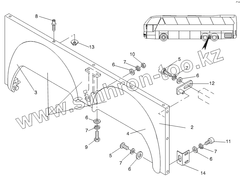 Каталог запасных частей к технике: Neoplan N 516 SHD (MB) E3. WHEEL HOUSE REAR