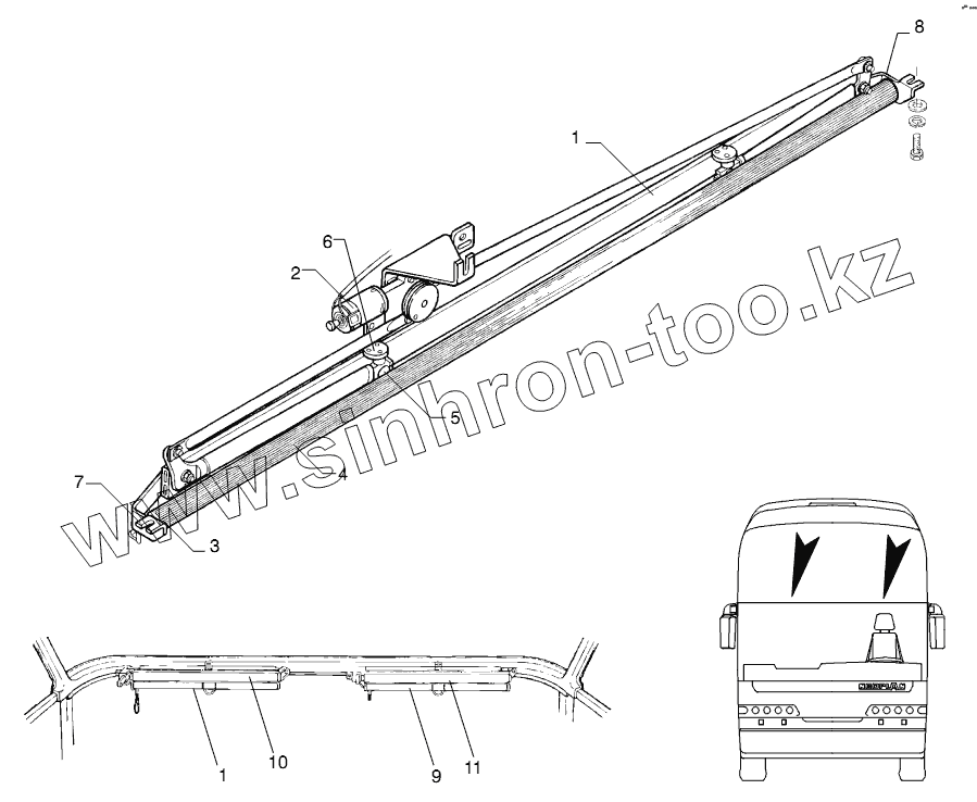 Каталог запасных частей к технике: Neoplan N 516 SHD (MB) E3. WINDSHIELD-ROLLER