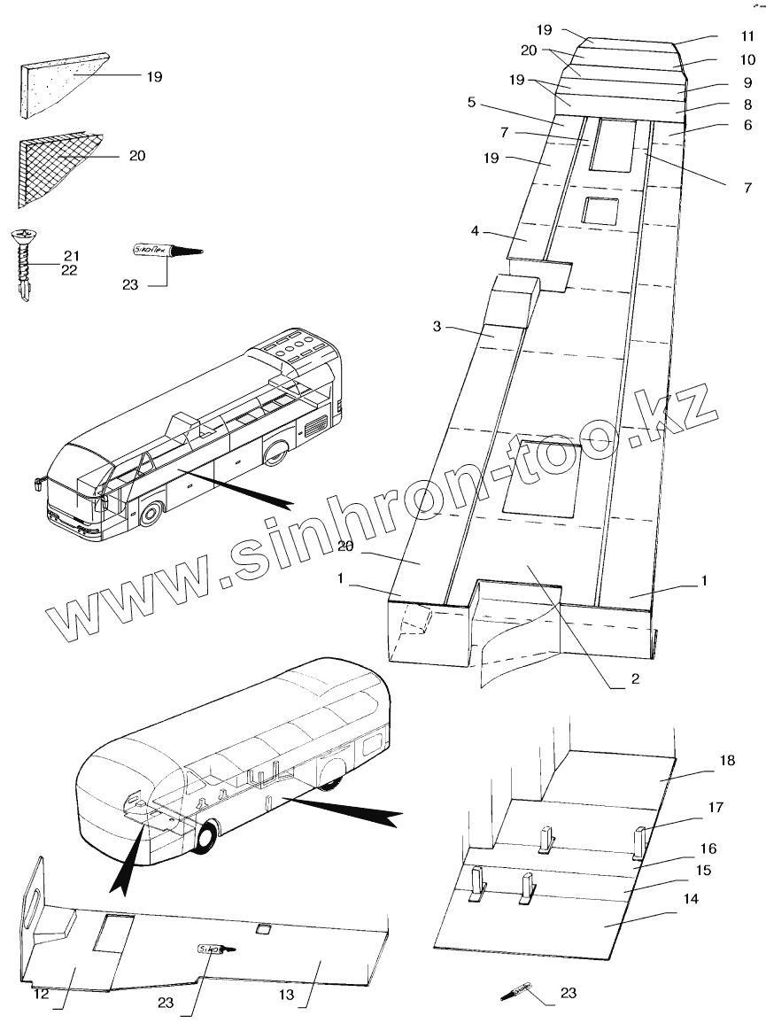 Каталог запасных частей к технике: Neoplan N 516 SHD (MB) E3. WOOD FLOORING