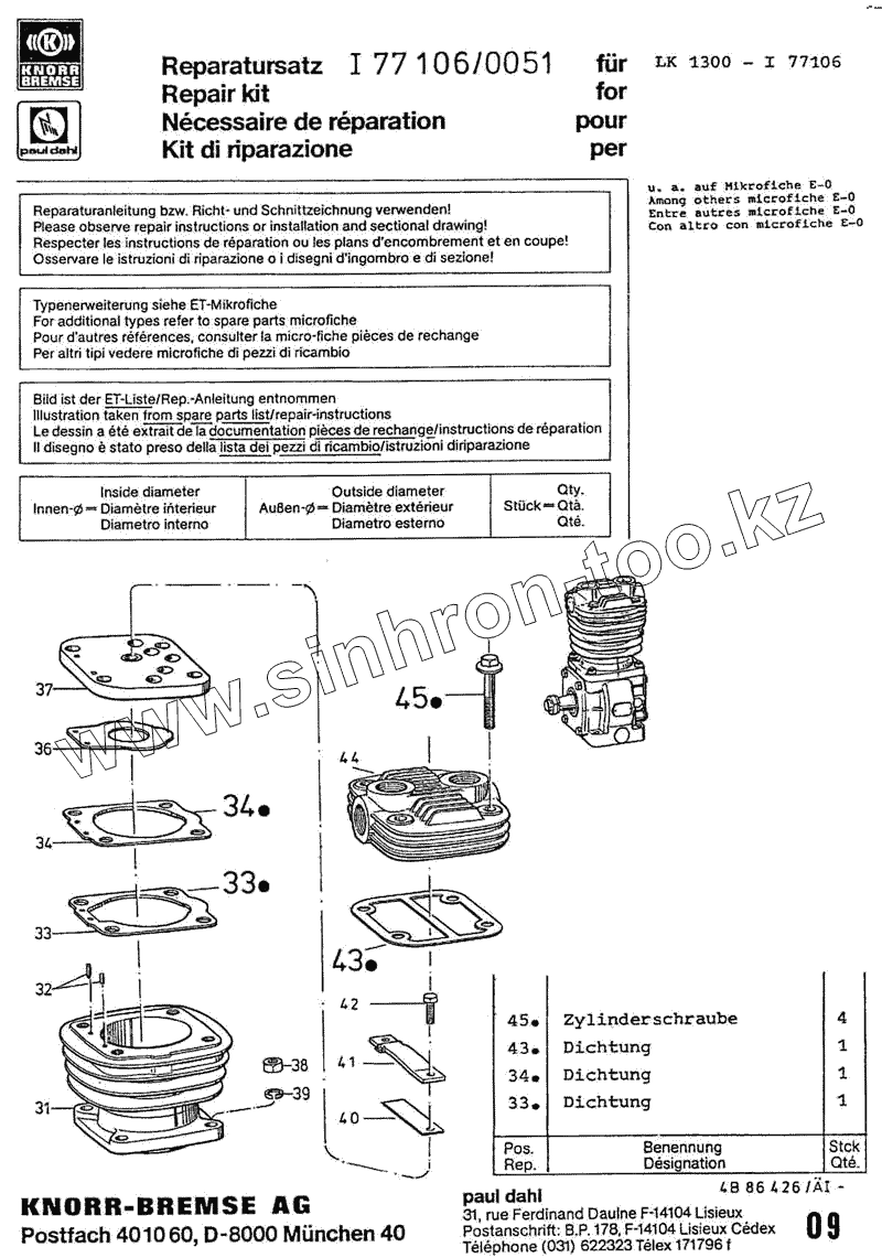 Каталог запасных частей KNORR-BREMSE применяемых на технике ПАЗ. KNORR-BREMSE