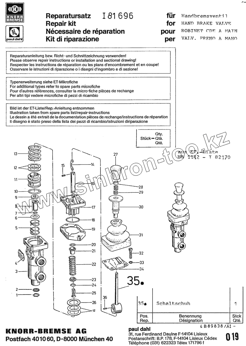Каталог запасных частей KNORR-BREMSE применяемых на технике ПАЗ. KNORR-BREMSE