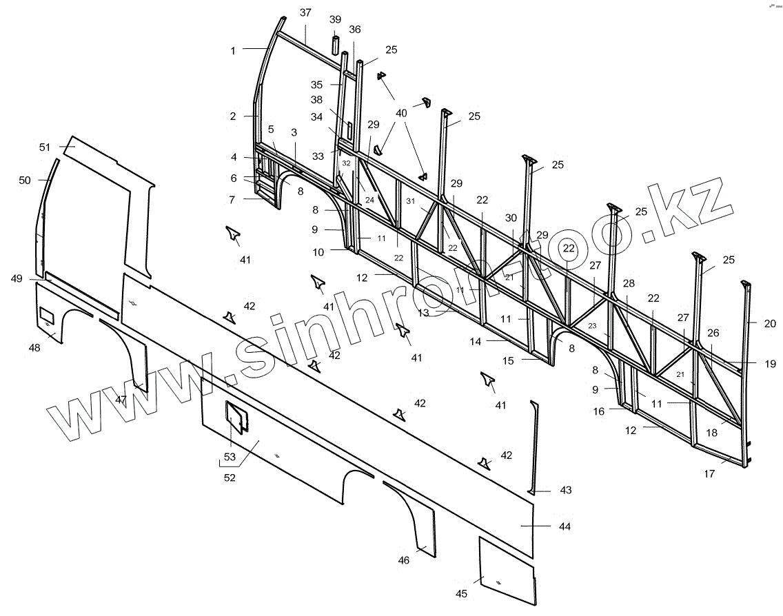 Каталог запасных частей к технике: ПАЗ-3204. Боковина левая