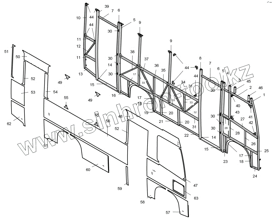 Каталог запасных частей к технике: ПАЗ-3204. Боковина правая