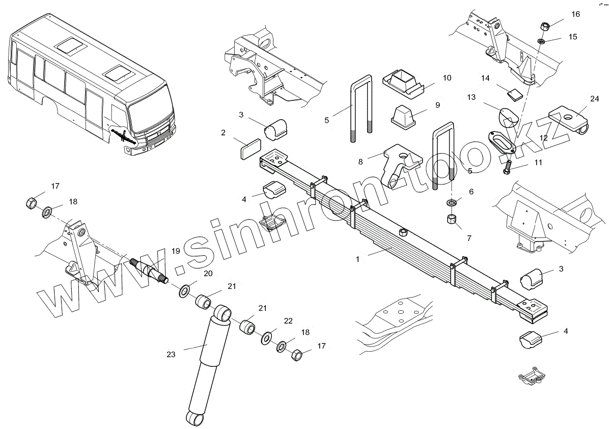 Каталог запасных частей к технике: ПАЗ-3204. Установка передней подвески