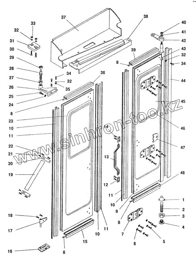 Каталог запасных частей к технике: ПАЗ-32053. Дверь пассажирская с остеклением