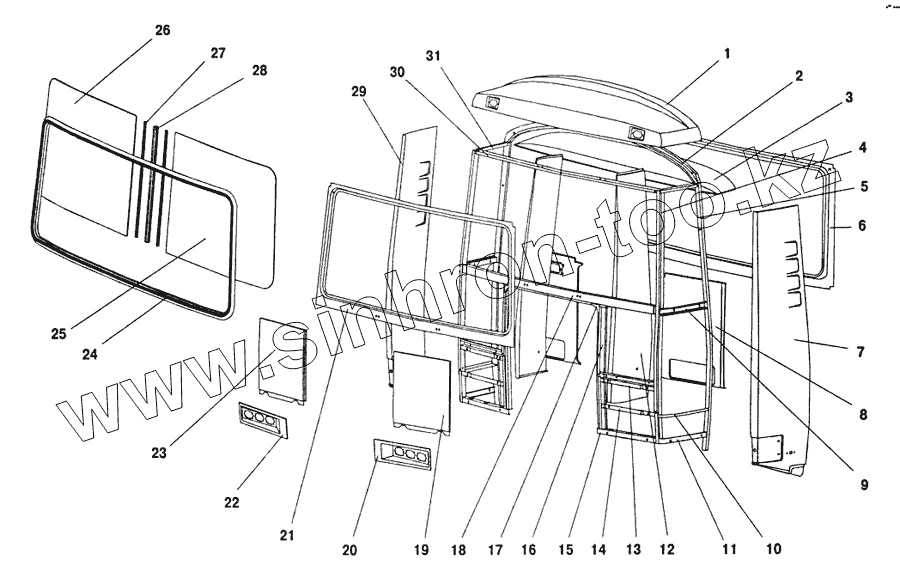 Каталог запасных частей к технике: ПАЗ-32053. Задок кузова с остеклением