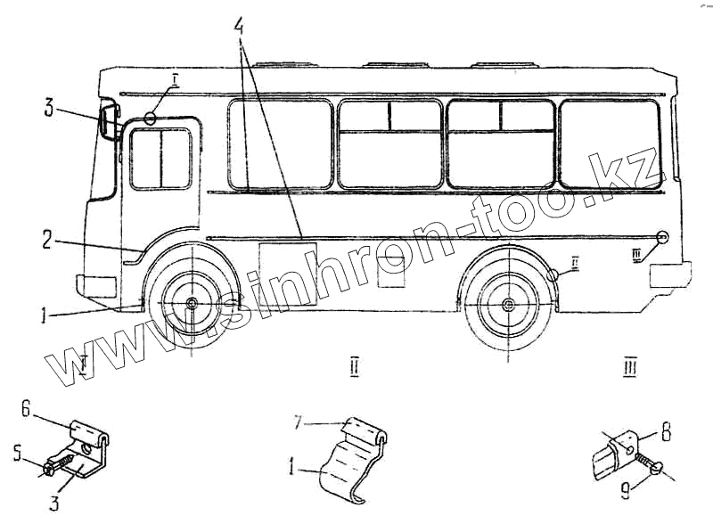 Каталог запасных частей к технике: ПАЗ-3205-110. Наружная отделка