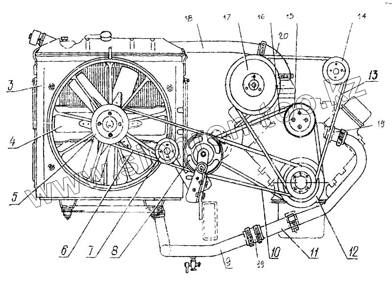 Каталог запасных частей к технике: ПАЗ-3205-110. Привод вентилятора, ремни и шланги